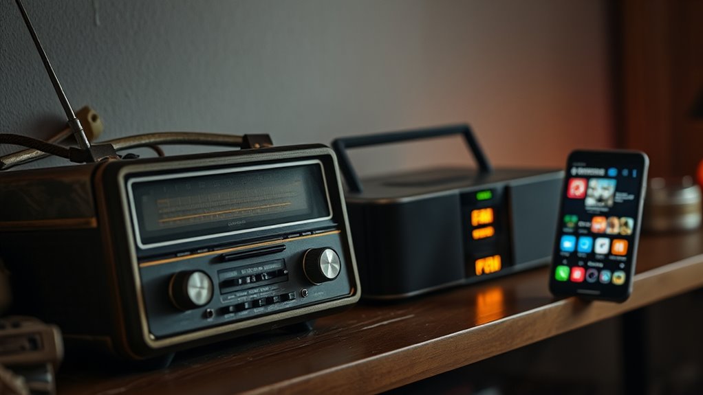 Ultimately, the decline of AM/FM radio and the rise of streaming audio reflect changing consumer preferences and technological advances. You’re now part of a media environment where control is in your hands, and content is tailored to your interests. This evolution not only shifts how you access entertainment but also influences the financial dynamics of the entire industry, with ad revenue moving toward digital and podcast-centric platforms. As streaming continues to grow, traditional radio’s role diminishes, highlighting a new era of audio consumption that’s more flexible, personalized, and driven by your preferences.