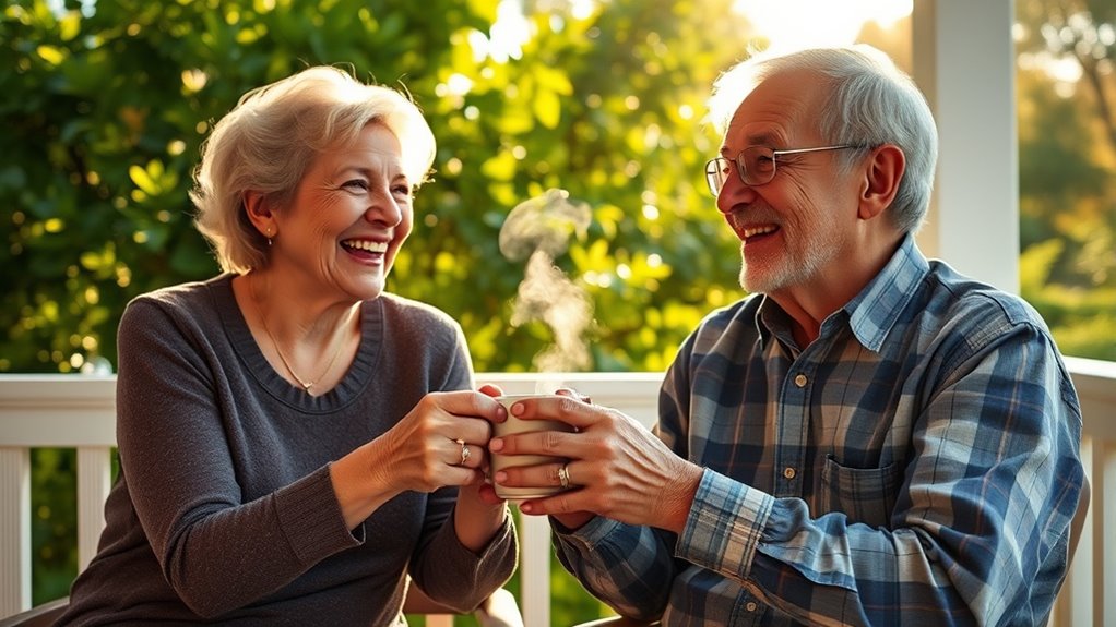 Spending just ten minutes a day on small habits can keep your relationship strong and happy for decades. Try sharing daily appreciation, exchanging genuine compliments, and making eye contact during conversations. You can also check in on each other’s feelings, take a short walk together, or listen to a favorite memory or song. Doing small chores as a team or sending thoughtful notes can boost your bond. Keep exploring these simple habits to deepen your connection over time.