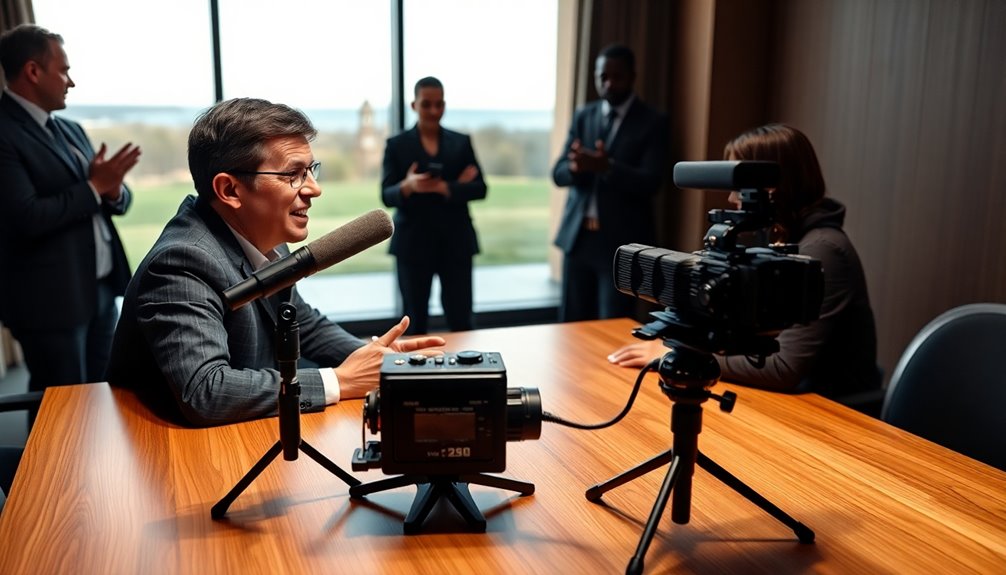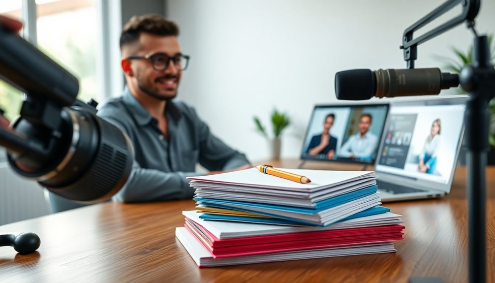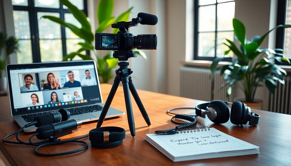 To master video interviews, start by thoroughly researching the job and company. Familiarize yourself with common questions, and conduct mock interviews to practice your responses. Verify your technical setup is perfect: pick a quiet, well-lit space, and test your equipment ahead of time. Dress professionally, as you would for an in-person interview. Pay attention to your communication skills—maintain eye contact, listen actively, and convey confidence through body language. Don't forget to follow up afterward. With these expert tips, you'll be well on your way to acing your next video interview. There's more you can discover to enhance your approach.