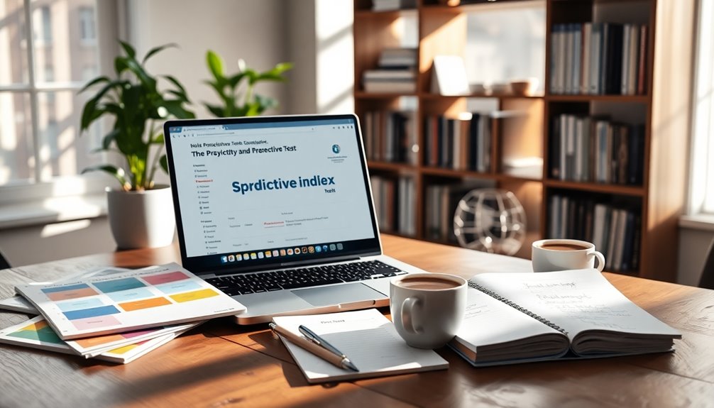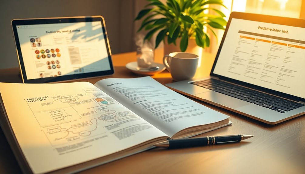 Mastering the Predictive Index Test can greatly boost your chances of landing a job. You'll encounter two main assessments: the Cognitive Assessment, which evaluates your reasoning skills, and the Behavioral Assessment, which reveals your personality traits and work style. Both tests consist of 50 questions, completed in just 12 minutes each. By familiarizing yourself with sample questions and practicing in a distraction-free environment, you'll improve your confidence and time management. Honesty in your responses is key, ensuring you're aligned with the role. There's a lot more to learn about preparing effectively and enhancing your performance.