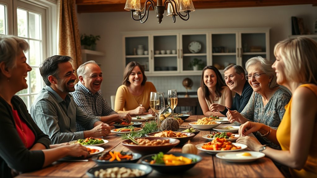 Building on shared family interests, embracing cultural bonding opportunities can substantially strengthen in-law relationships. Engaging in activities that highlight your partner’s cultural background fosters intercultural communication and deepens understanding. For example, sharing traditional foods or participating in cultural festivals creates meaningful moments that build trust. Using emotional intelligence helps you read subtle cues and respond appropriately, demonstrating respect and genuine curiosity. These efforts show you value your in-laws’ heritage, encouraging reciprocity. When you approach cultural differences with openness and an enthusiastic eagerness to learn, you reduce misunderstandings and promote cooperation. Recognizing the importance of relationship-building techniques can further enhance your ability to connect with family members. Over time, these shared cultural experiences become a foundation for stronger bonds, transforming tense visits into opportunities for connection and collaboration.