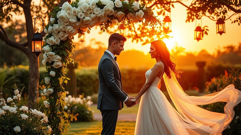 As life constantly evolves, reaffirming your commitment during a vow renewal can provide a grounding sense of stability and shared purpose. Renewal ceremonies serve as powerful reminders of your enduring bond, especially during times of change. They often incorporate vow exchange traditions that highlight your journey together and reinforce your dedication. By participating in a renewal ceremony, you actively reaffirm your love and commitment, acknowledging both your growth and the challenges you’ve overcome. These ceremonies allow you to reflect on your shared history while reaffirming your promises for the future. It’s a meaningful act that strengthens your connection, helps you stay aligned through life’s transitions, and reminds you why you chose each other in the first place.