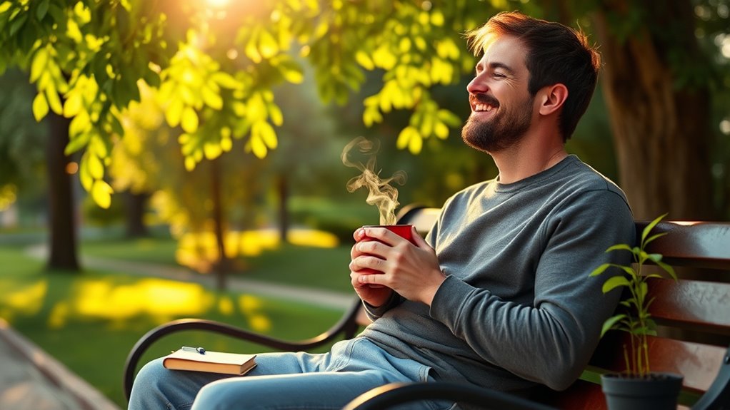 Reducing stress and anxiety is essential for strengthening your relationship bonds because these feelings can cloud your judgment and create unnecessary tension. Practicing mindfulness meditation helps you stay present, reducing rumination and emotional spikes. Regular physical activity releases endorphins, which naturally lower stress levels and boost your mood. To understand this better, consider the following: