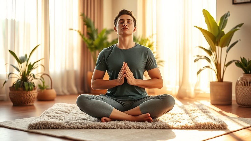 In addition to breathing exercises, meditation postures help enhance your practice by providing physical comfort and stability. You might sit on a cushion or chair, keeping your back straight yet relaxed. Rest your hands on your lap or knees, and gently close your eyes or keep a soft gaze. Proper posture ensures that your body remains alert but relaxed, preventing discomfort that could distract you from your meditation. Maintaining good posture also encourages better breathing, allowing your chest and diaphragm to move freely. As you settle into your meditation posture, focus on your breath, feeling the rise and fall of your chest or abdomen. This alignment fosters a deeper connection with your breathing, making it easier to stay present and grounded. Regular practice can also improve your overall comfort and support, making meditation more enjoyable and sustainable.