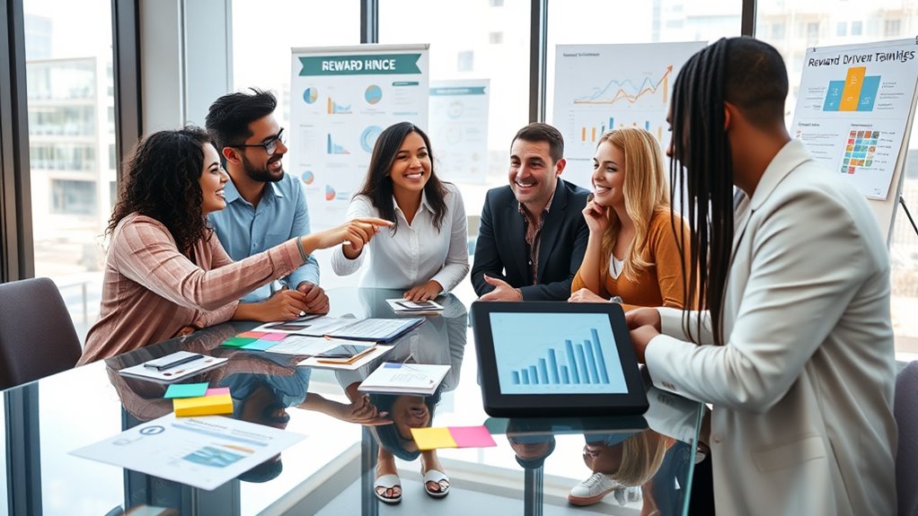 You might fall into reward overload, where too many rewards diminish their effectiveness, leading to reduced motivation. Additionally, if rewards aren’t perceived as fair, you could feel demotivated or resentful. To avoid these pitfalls, verify rewards are balanced, meaningful, and perceived as equitable. Regularly review your reward system to maintain motivation, making sure it aligns with individual effort and achievements, fostering fairness and engagement.