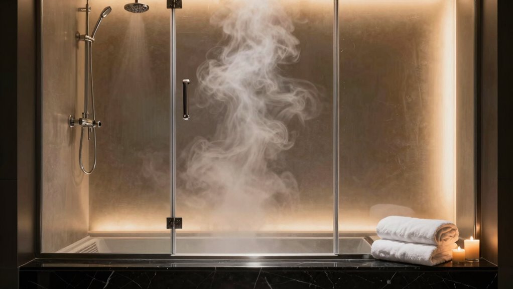 Lighting dramatically influences your steam shower experience. Studies show that ambient lighting can boost relaxation by 50%. You’ll want to choose soft, warm color temperatures, around 2700K, to create a cozy, inviting atmosphere. Adjustable lighting allows you to set the mood, whether you’re unwinding or energizing. Proper lighting transforms your steam shower into a luxurious retreat, making it feel more like a spa than just a functional space.