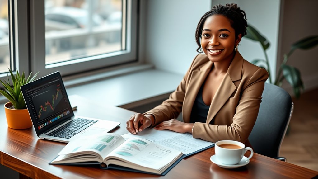 In gender finance, you’re supported by numerous resources that help you make informed investment decisions. Investment tools like online platforms, mobile apps, and financial literacy websites offer tailored advice and easy-to-understand information. You can also access workshops, webinars, and mentorship programs designed specifically for women. These resources empower you to confidently navigate investments, build wealth, and achieve financial independence. Taking advantage of these tools guarantees you’re well-equipped for your financial journey.